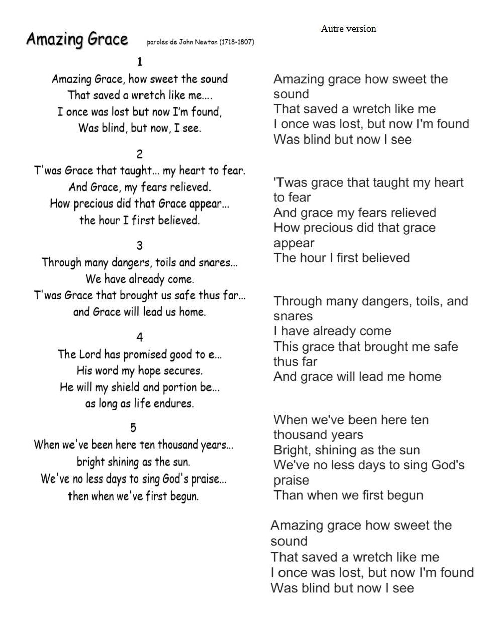 Amazing Grace - (Ecouter musique) | John Newton |